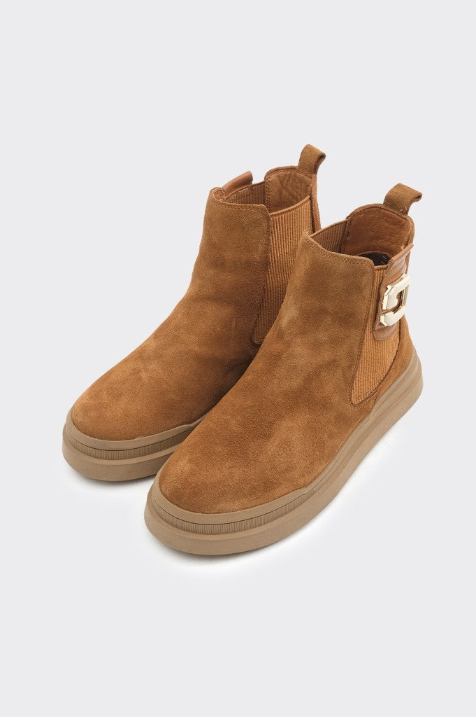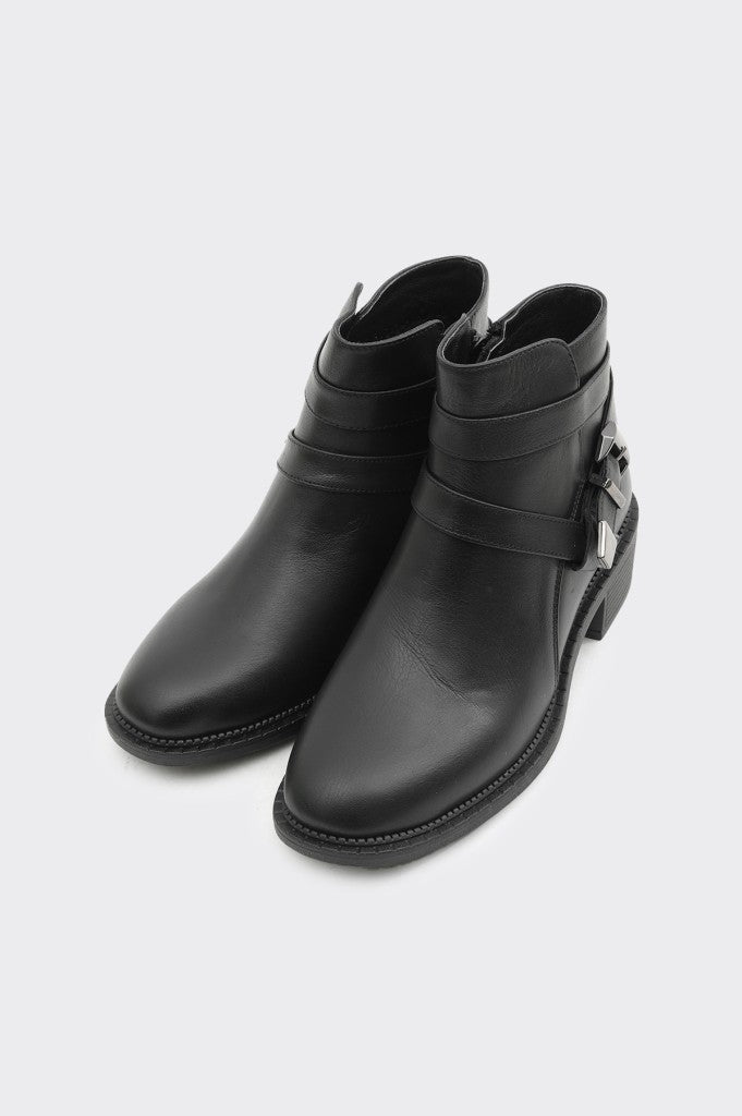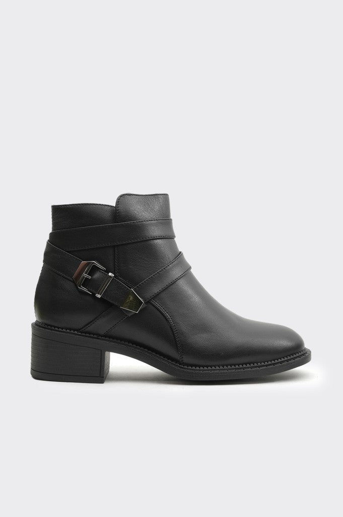 Hakiki Deri Kısa Topuk Tokalı Kadın Bot
