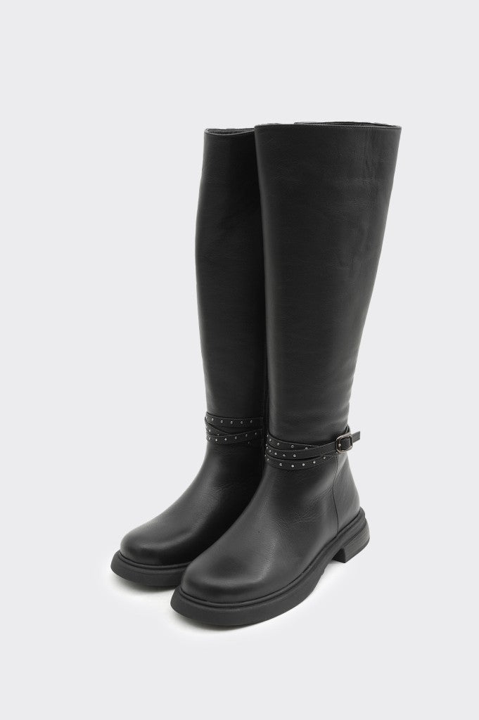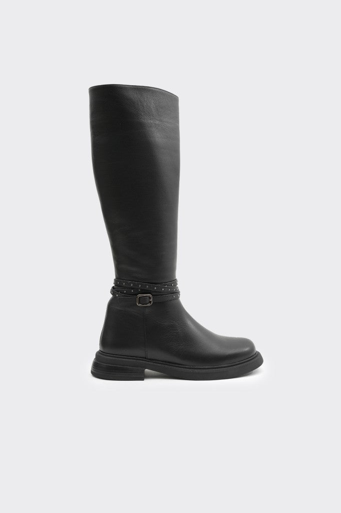 Hakiki Deri Bilekte Fermuarlı Kadın Diz Altı Çizme