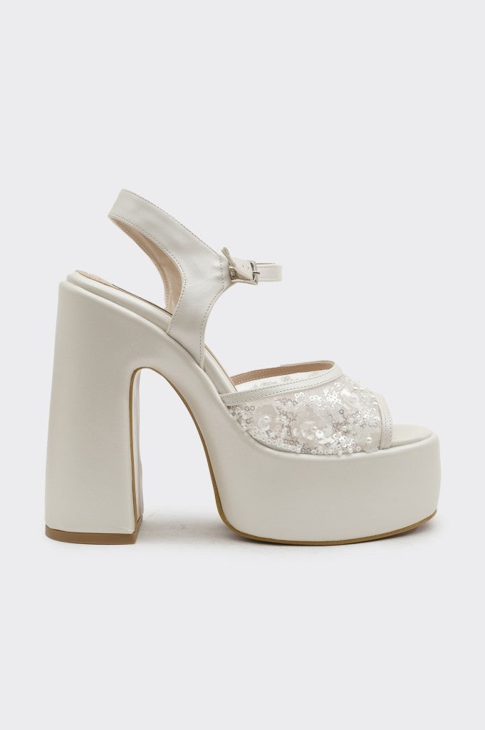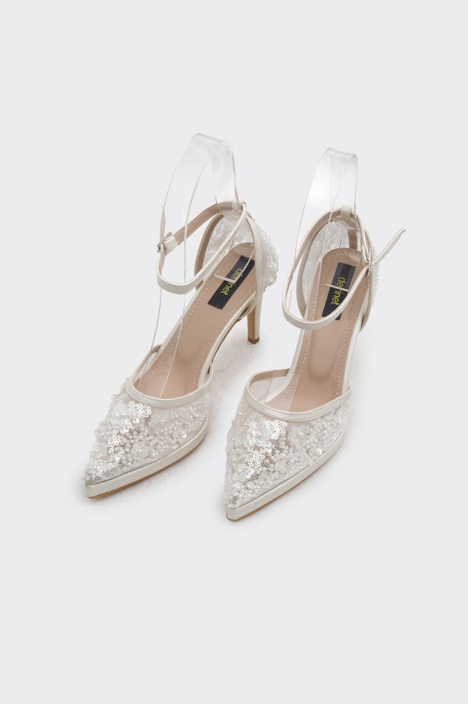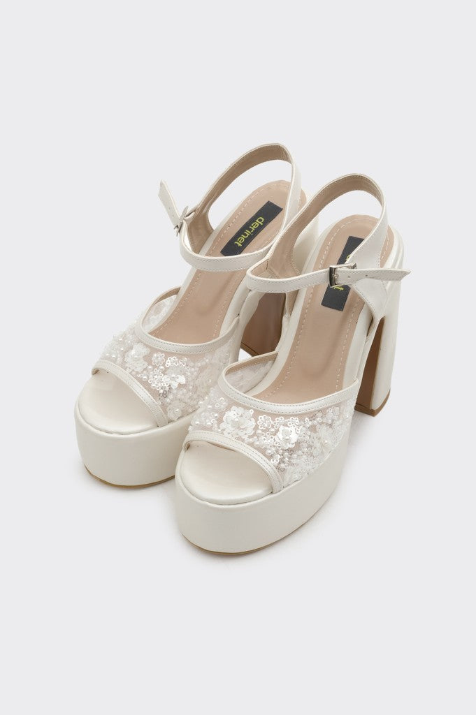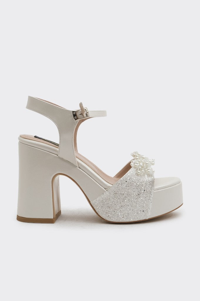 Platformlu İnci Aksesuarlı Kadın Topuklu Ayakkabı