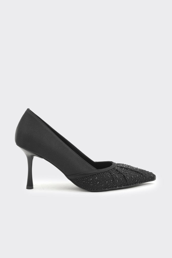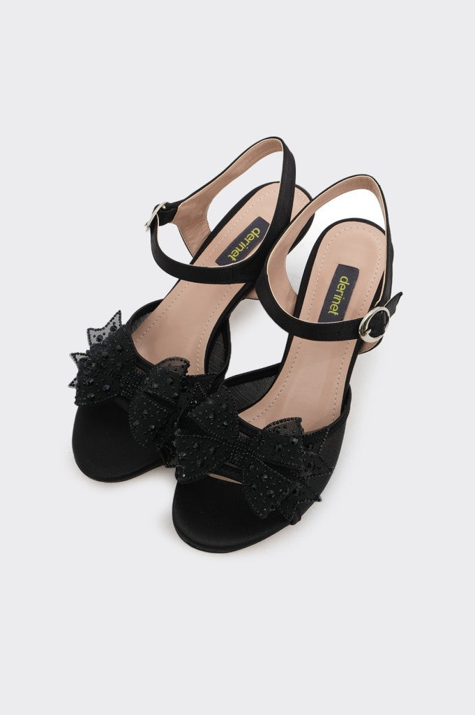 Kısa Topuk Boncuk Aksesuarlı Kadın Abiye Ayakkabı