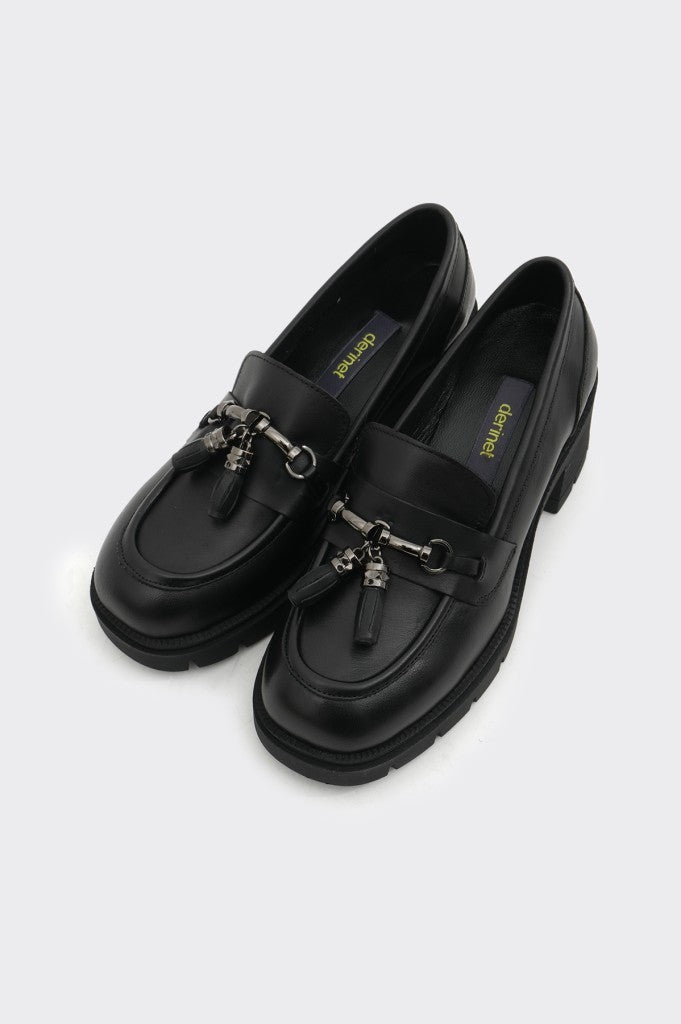 Bu zarif siyah deri ayakkabı, günlük kullanım için tasarlanmış şık bir seçenek sunuyor. Hakiki deri malzemesi sayesinde hem dayanıklı hem de nefes alabilir özellikte. 5 cm topuk yüksekliği ile konforlu bir deneyim vaat ederken, tokalı tasarımı modern bir dokunuş katıyor. Siyah ve siyah rugan seçenekleriyle farklı tarzlara uyum sağlıyor. Kaliteli işçiliği ve şık görünümüyle gardırobunuzun vazgeçilmez parçalarından biri olmaya aday.