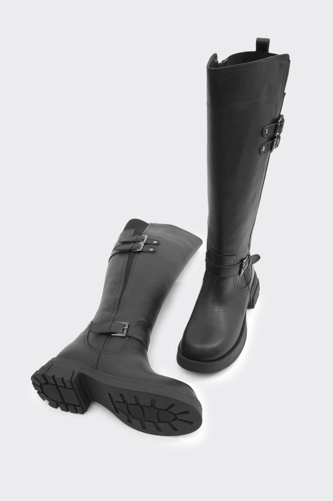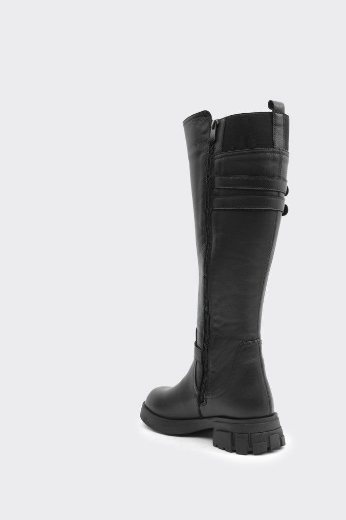 Tokalı Hakiki Deri Fermuarlı Kadın Çizme