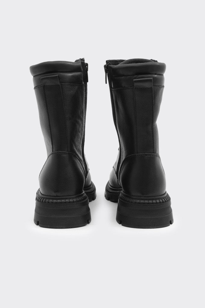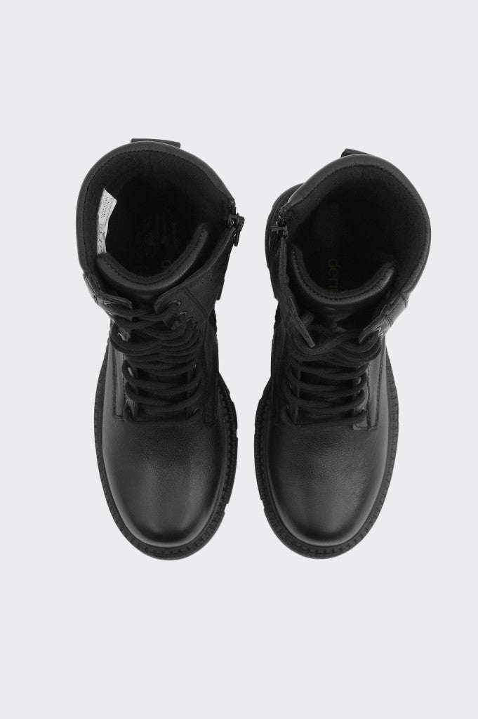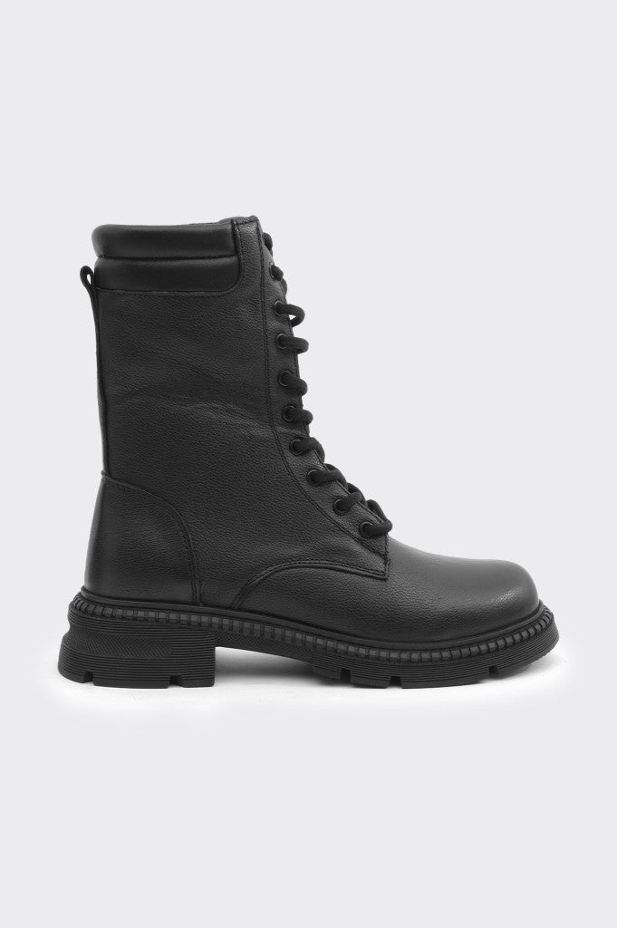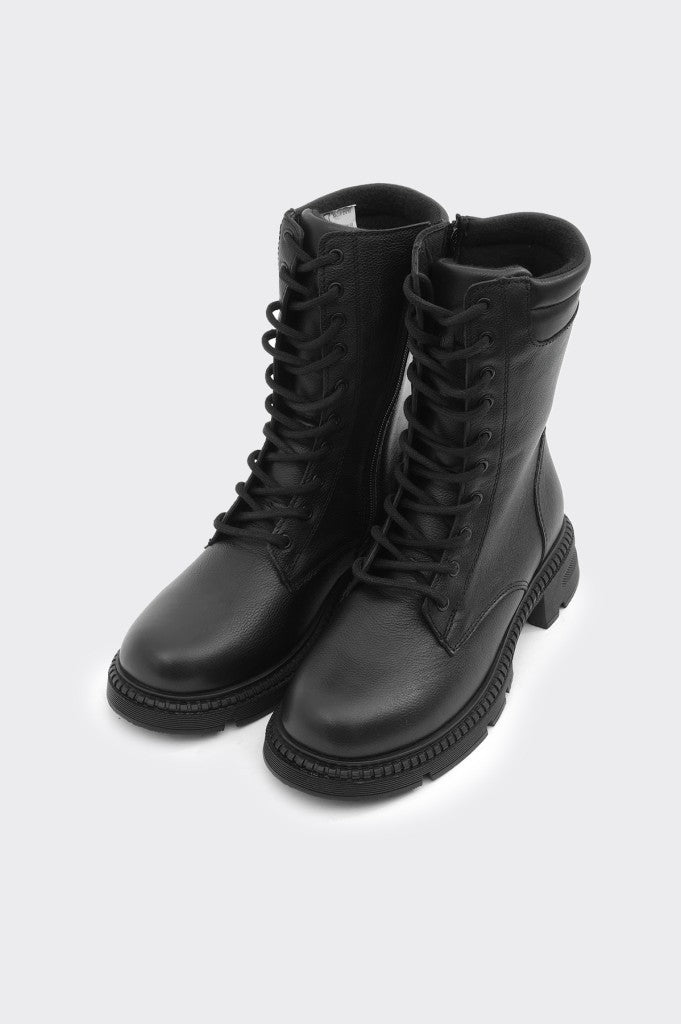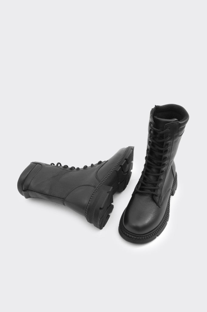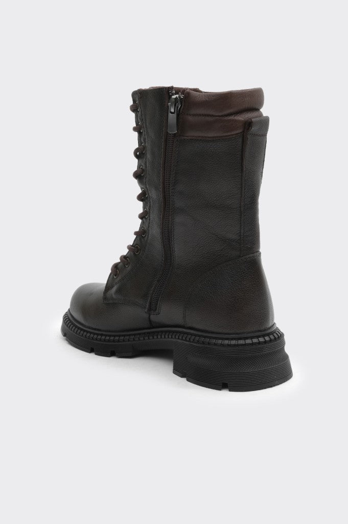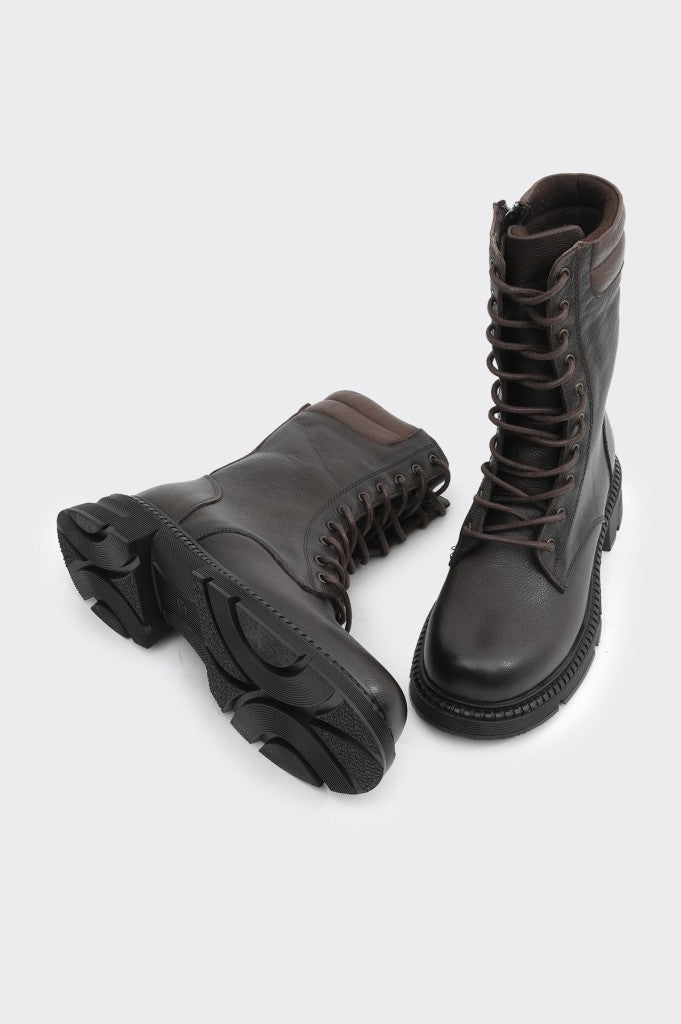 Fermuarlı Bağcıklı Hakiki Deri Kadın Uzun Bot