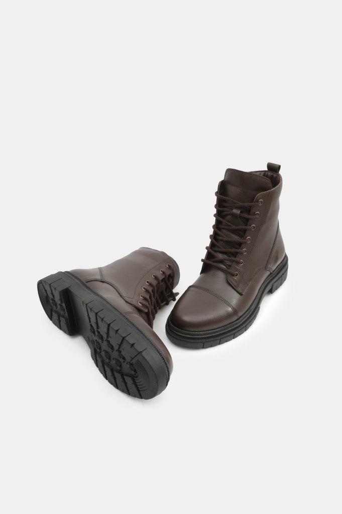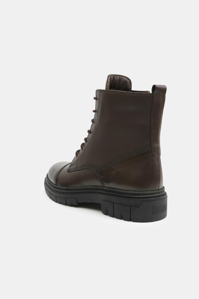 Hakiki Deri Bilek Üstü Bağcıklı Fermuarlı Kadın Bot
