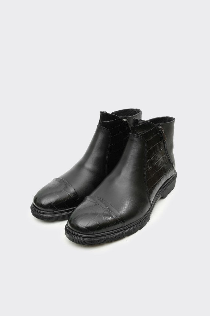 Hakiki Deri Çift Fermuarlı Erkek Bot