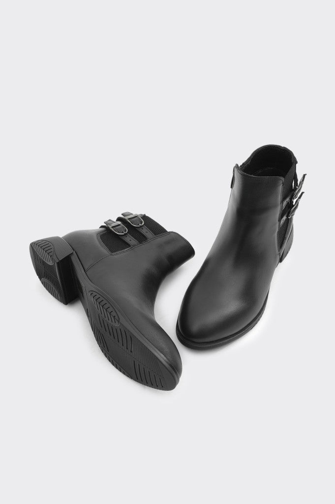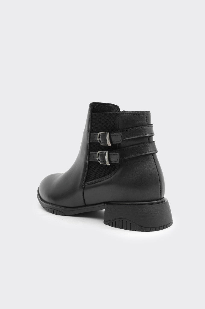 Hakiki Deri Çift Tokalı Fermuarlı Kadın Bot