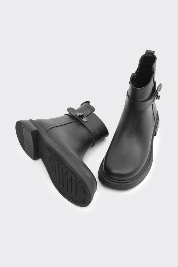 Hakiki deriden üretilmiş bu bot, hem dayanıklılık hem de şıklık sunuyor. 4 cm taban yüksekliği ile konforlu bir kullanım sağlarken, fermuar detayı pratik giyim imkanı tanıyor. Sıcak tutan iç astarı sayesinde soğuk havalarda ideal bir tercih olacak. Toka detayı ise tasarıma modern bir dokunuş katıyor.