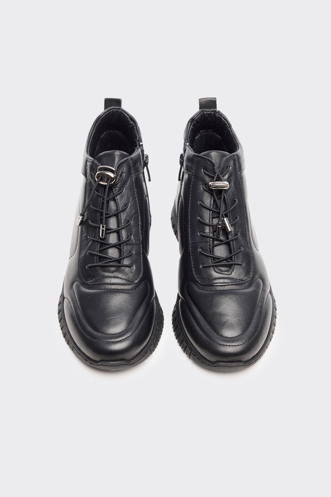 Hakiki Deri Fermuarlı Lastik Bağcıklı Kadın Bot