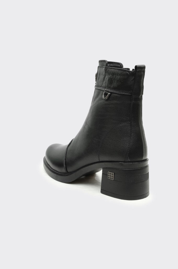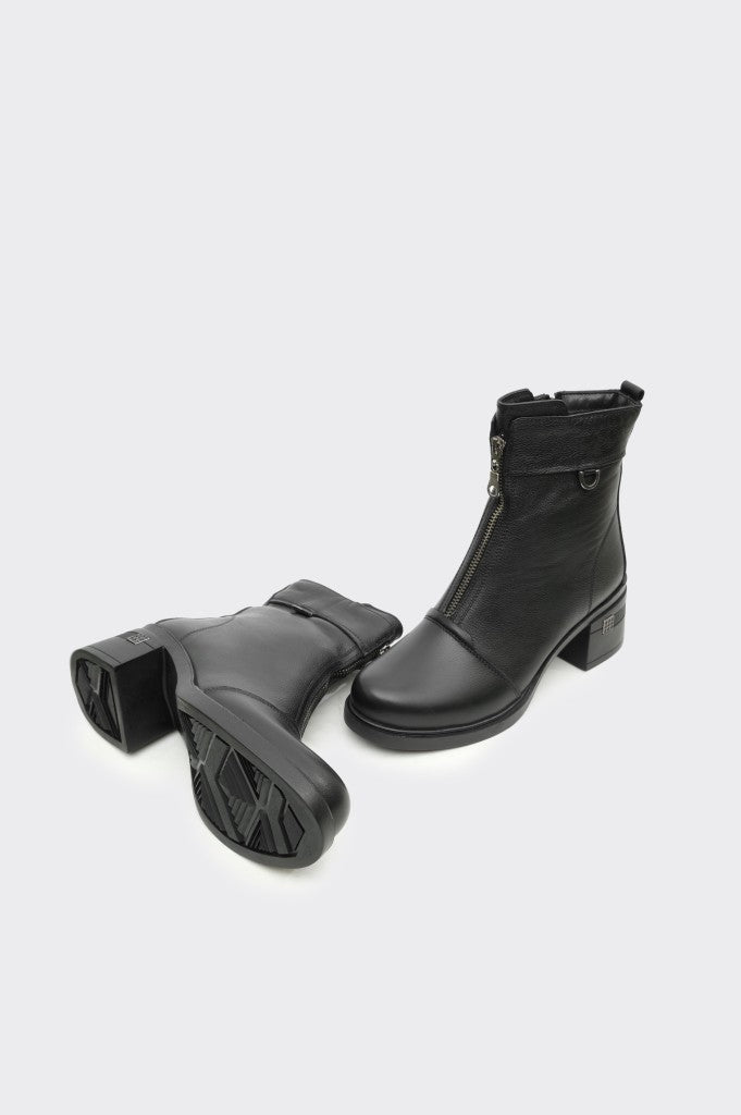 Hakiki Deri Fermuarlı Topuklu Kadın Bot