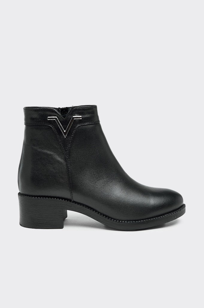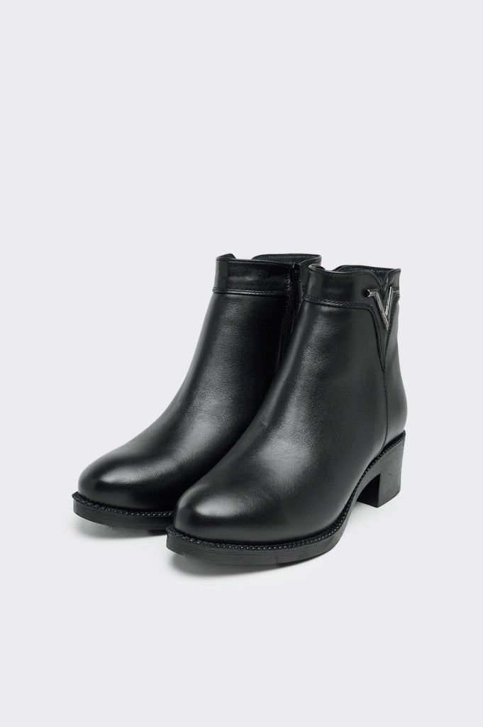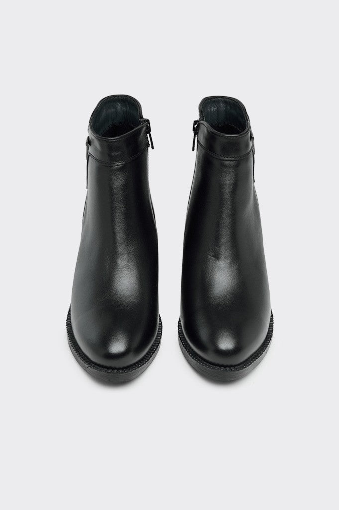 Hakiki Deri Kısa Topuk Fermuarlı Kadın Bot