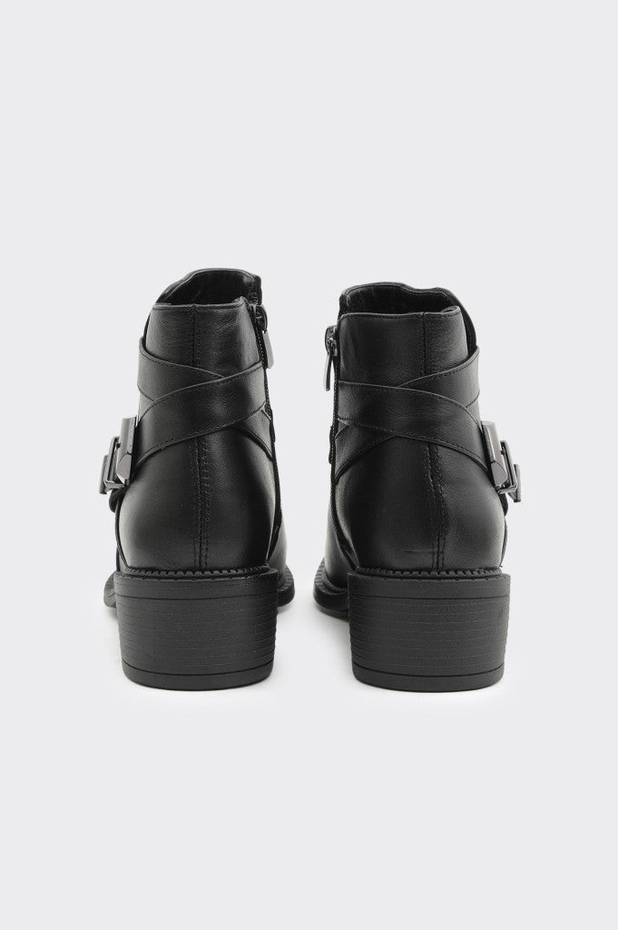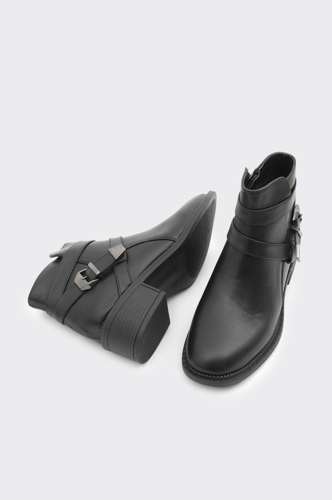 Hakiki Deri Kısa Topuk Tokalı Kadın Bot
