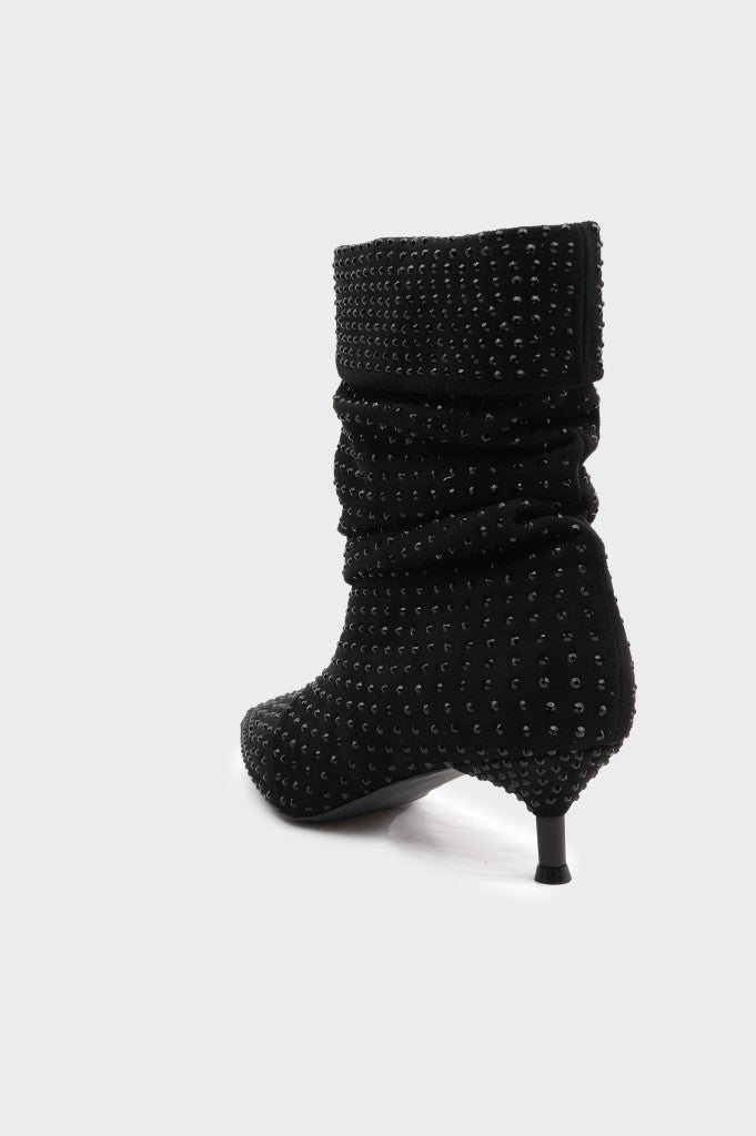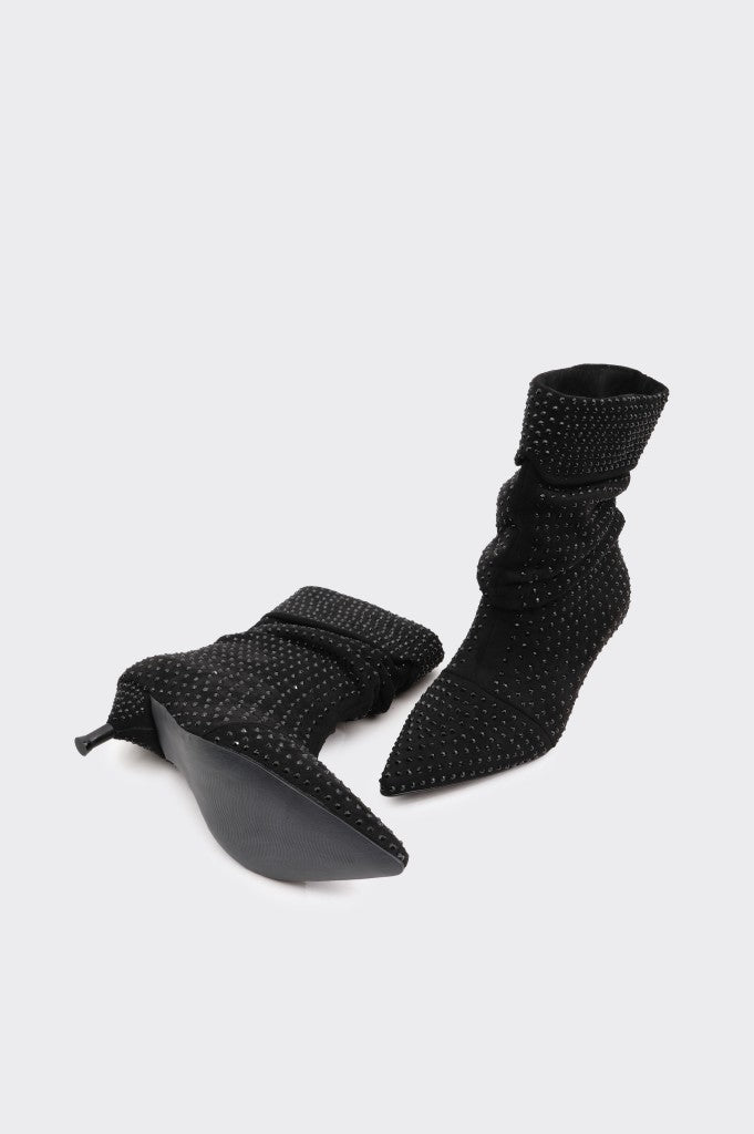 Kısa Topuklu Taşlı Fermuarsız Kadın Bot
