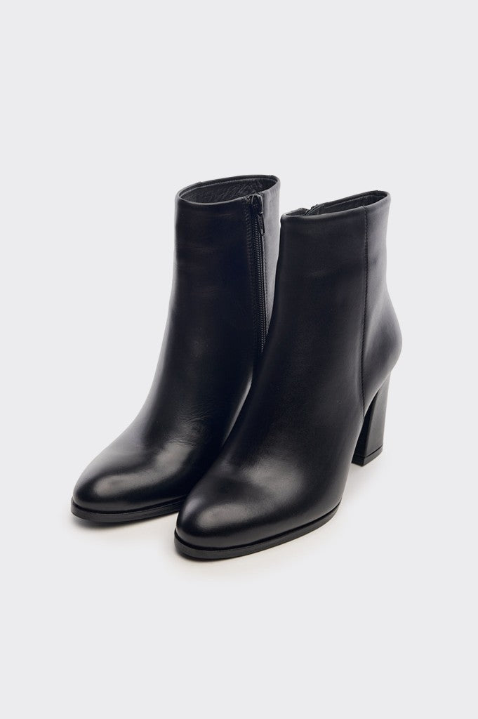 Klasik Hakiki Deri Fermuarlı Topuklu Kadın Bot