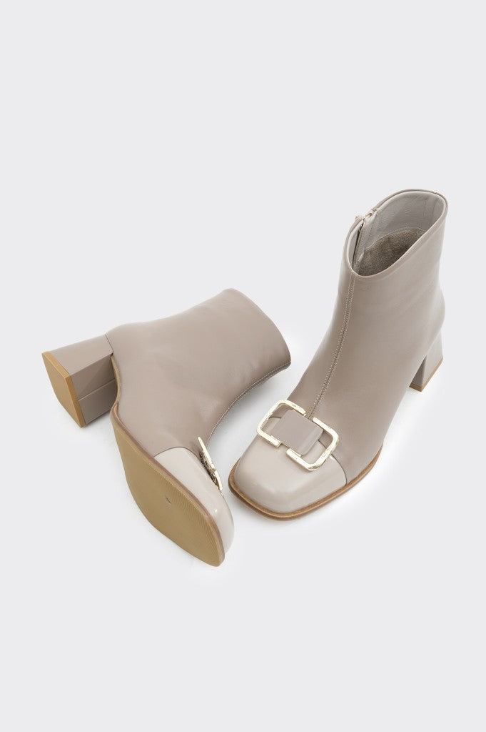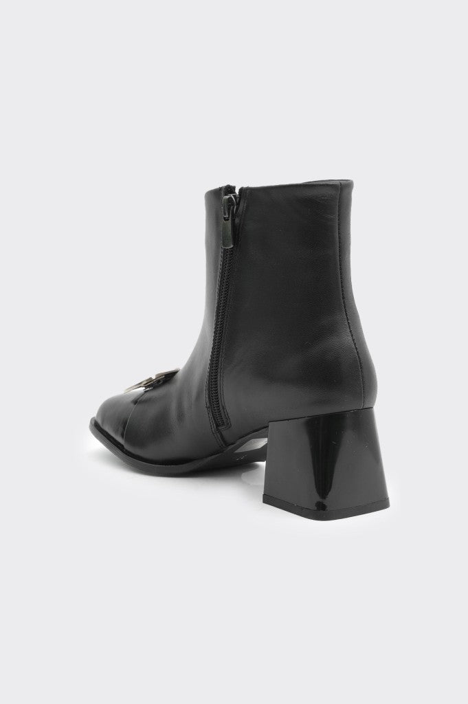 Topuklu Hakiki Deri Tokalı Fermuarlı Kadın Bot
