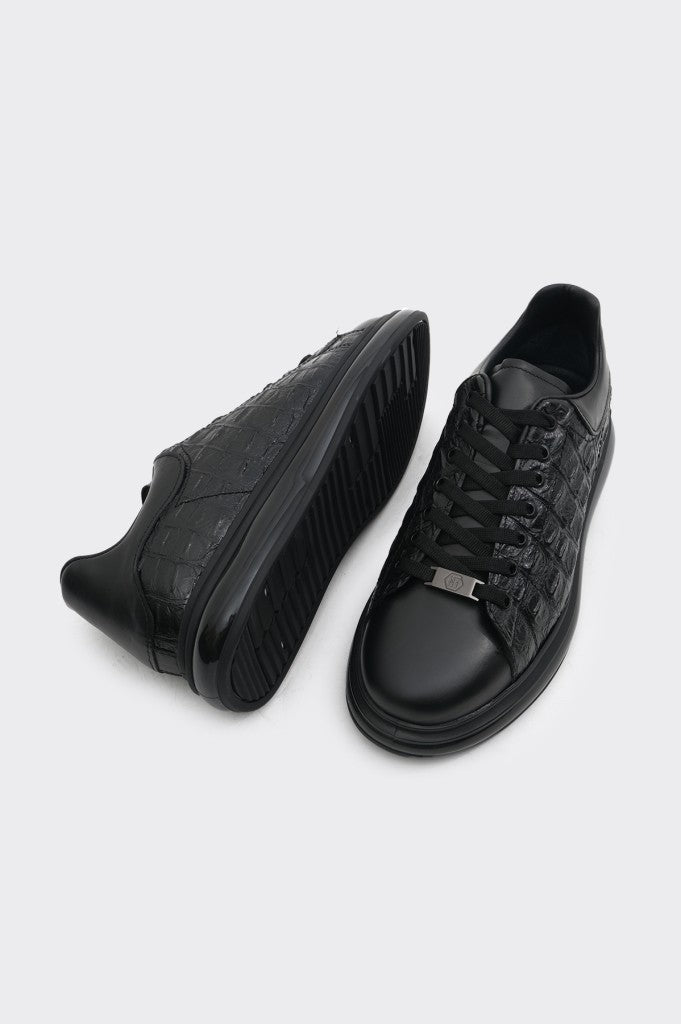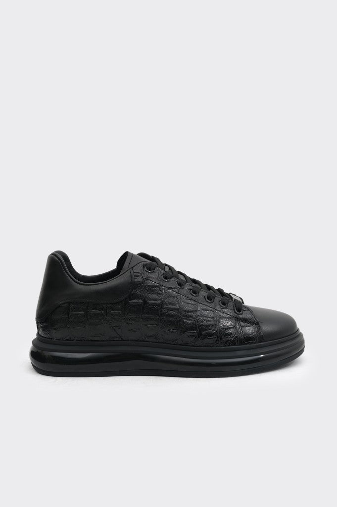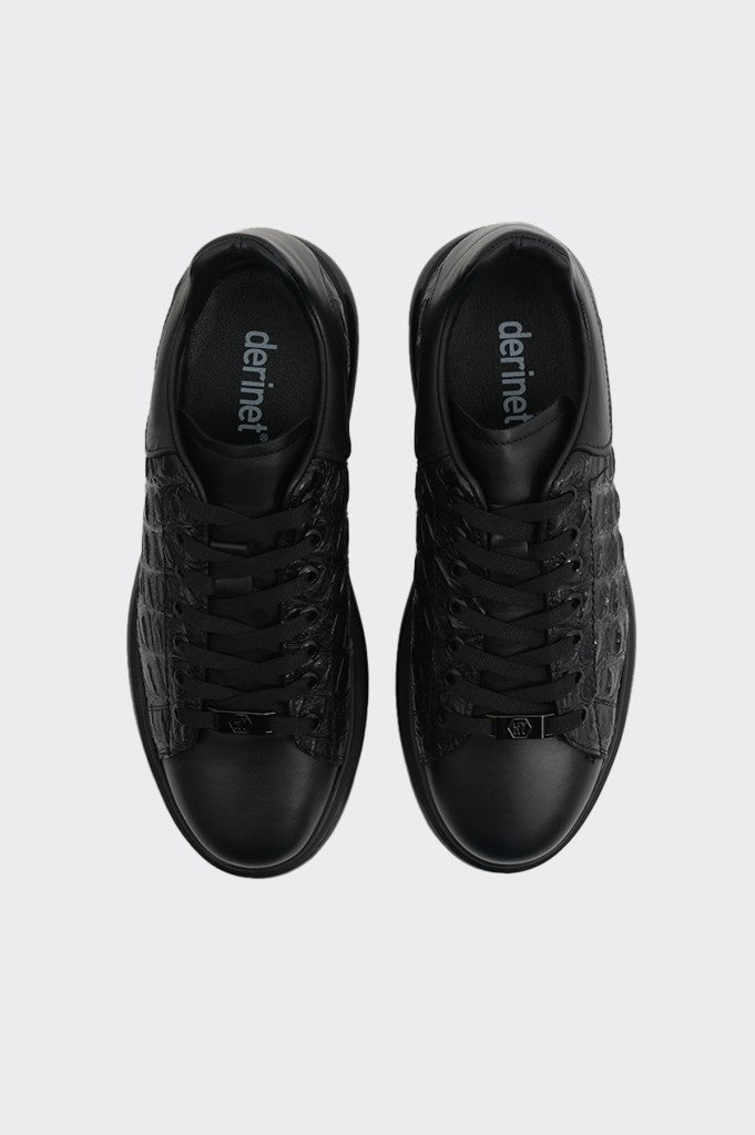 Hakiki deri malzemesiyle üretilmiş bu erkek sneaker, günlük kullanımda üstün konfor sunar. Siyahın en cazip tonlarındaki tasarımı hem resmi hem de gündelik kıyafetlerle uyum sağlar. Bağcıklı yapısı ayak anatomisine mükemmel uyum gösterirken, özel taban teknolojisiyle uzun süreli kullanımlarda bile yorgunluk hissi yaşatmaz. Şık ve minimalist çizgileriyle her an için tarzınızı tamamlayan bir seçenek olarak öne çıkar.