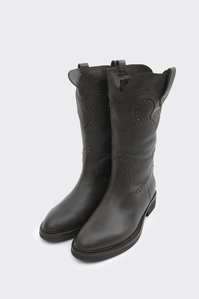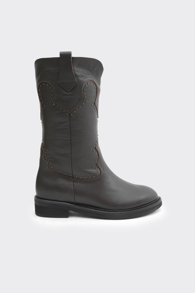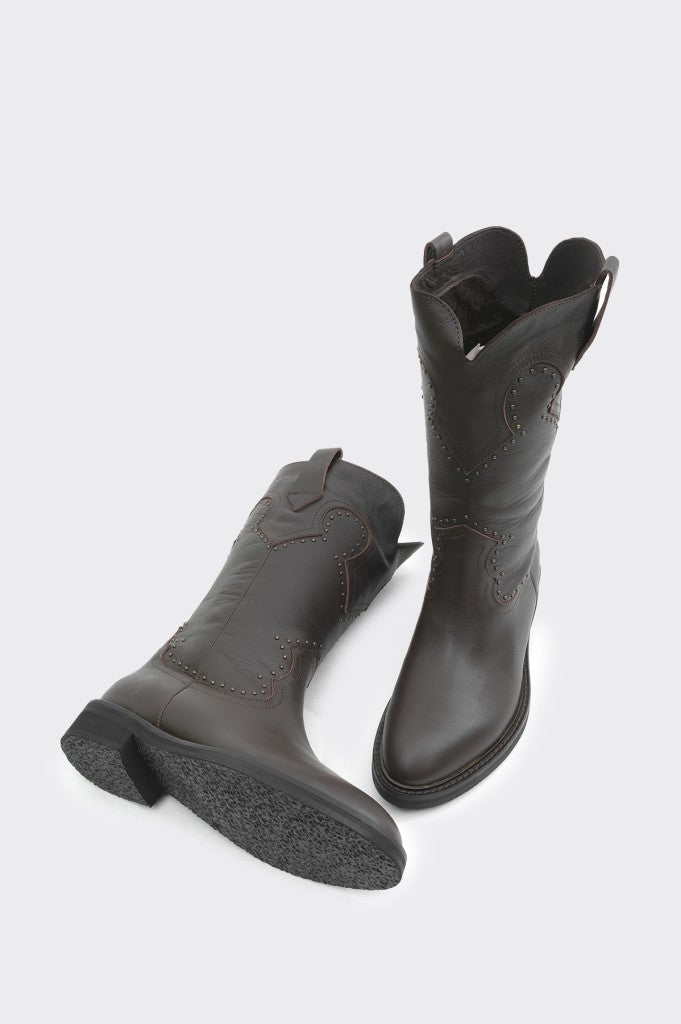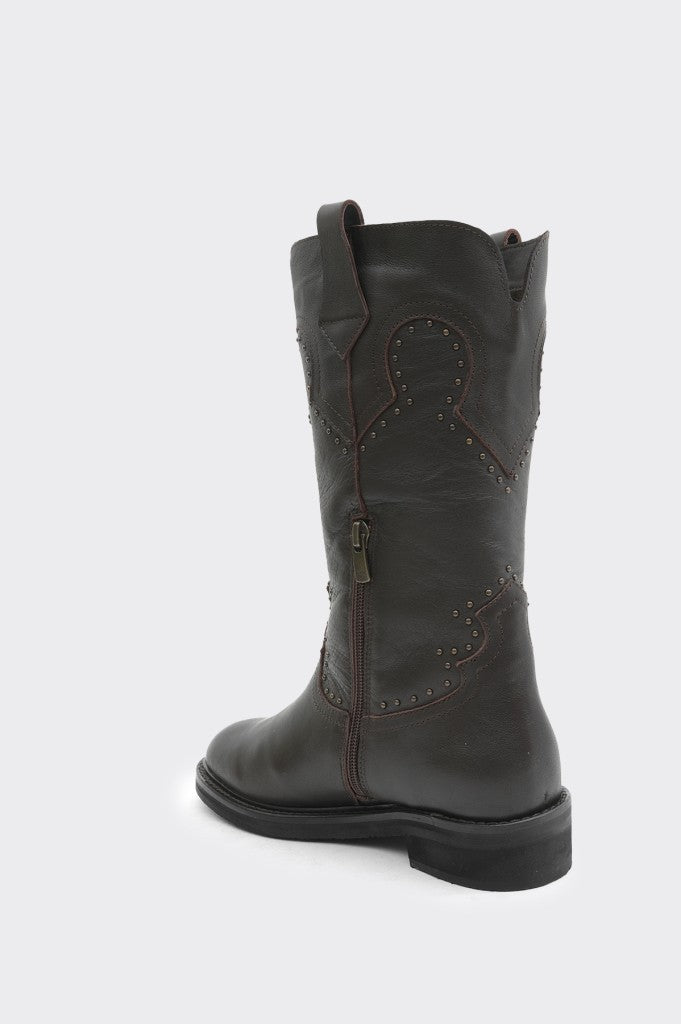 Hakiki Deri Bilekte Fermuarlı Kadın Diz Altı Çizme