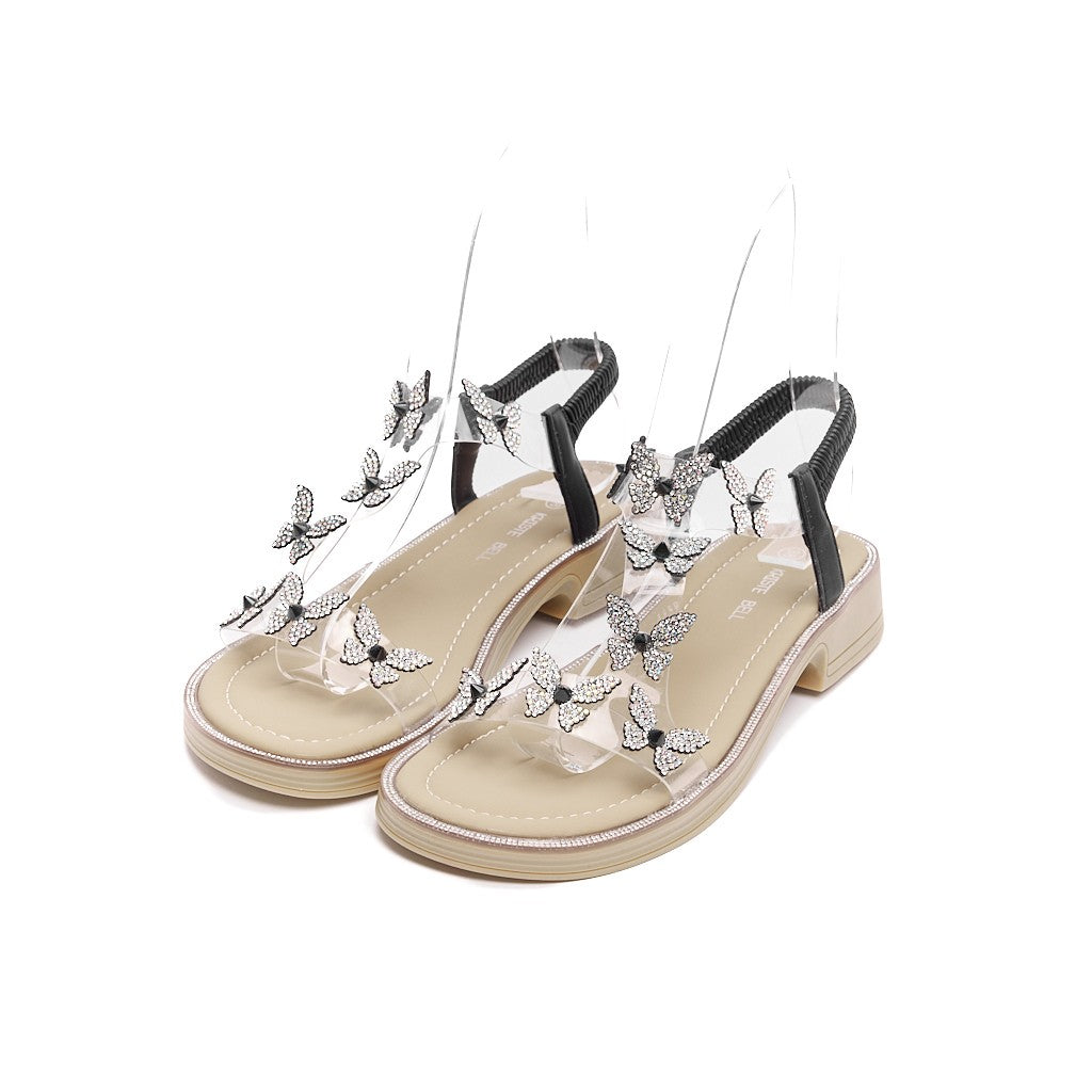 Taşlı Kelebek Aksesuarlı Kadın Sandalet