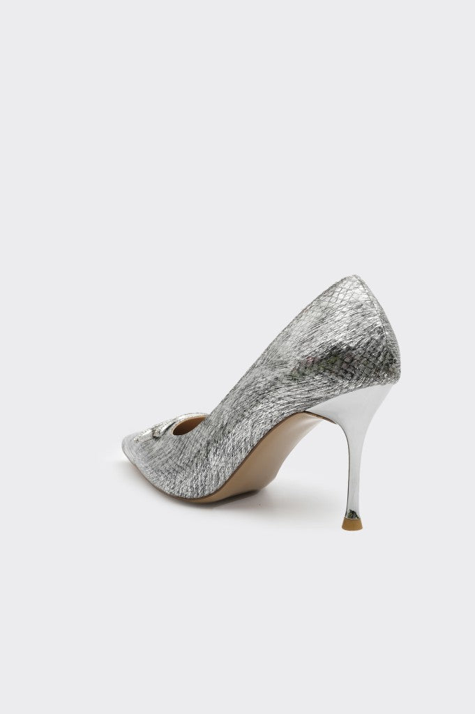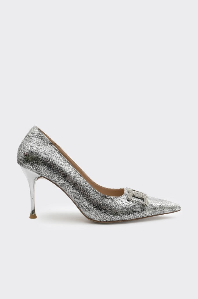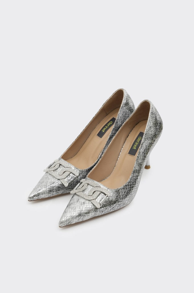 Zarif tokası ve taş detaylarıyla şıklığı ön plana çıkaran bu stiletto, vegan deri malzemesiyle hem konfor hem de stil sunuyor. Altın ve gümüş renk seçenekleriyle farklı tarzlara uyum sağlayabilen bu ayakkabı, özel günlerin vazgeçilmezi olmaya aday. İnce topuğu ve şık duruşuyla gardırobunuzda fark yaratacak bir tasarıma sahip. Kaliteli işçiliği ve dikkat çekici detaylarıyla gün boyu konfor hissi veriyor.