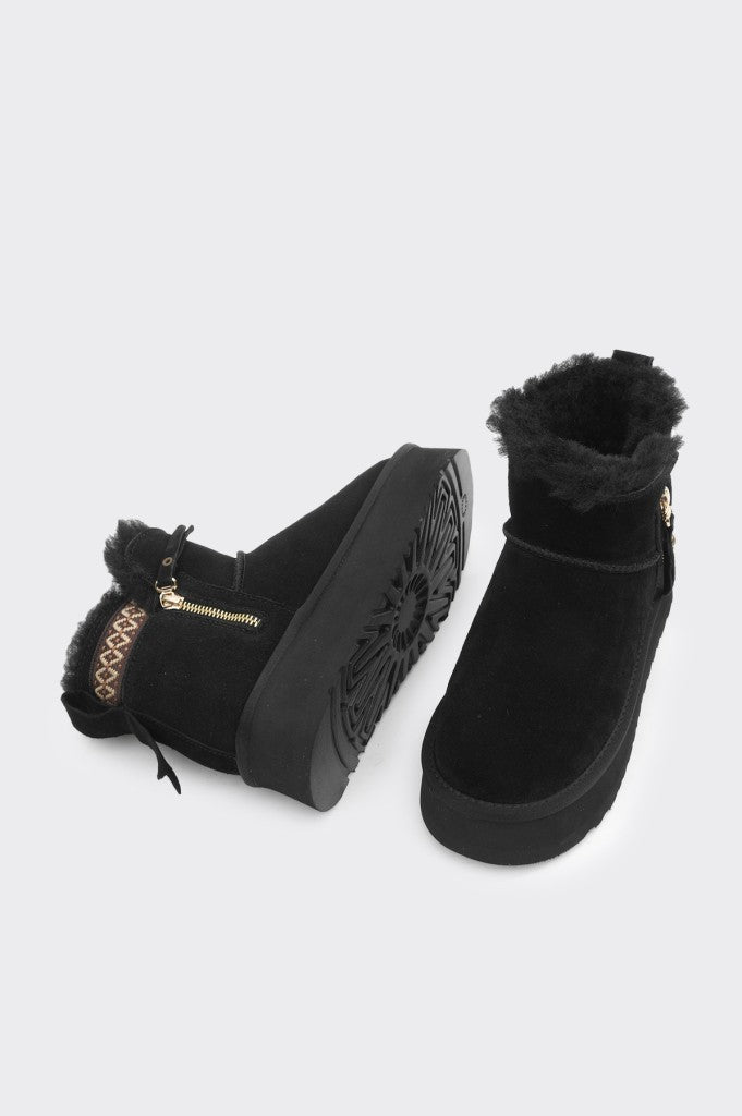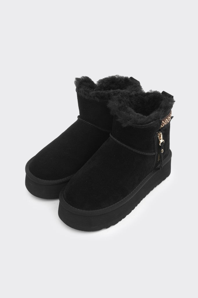 Kışın soğuğuna karşı koruma sağlayan bu bilek üstü bot, yumuşak vegan deri yapısıyla dikkat çekiyor. İç kısmındaki doğal görünümlü kürk sayesinde hem sıcak tutuyor hem de konfor sunuyor. İthal malzemeden üretilen dış yüzeyi ve 4 cm taban yüksekliğiyle şıklığı öne çıkarıyor. Siyah süet ve camel renk seçenekleriyle farklı tarzlara uyum sağlıyor.
