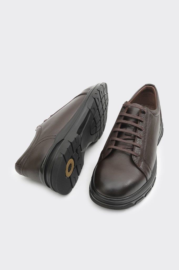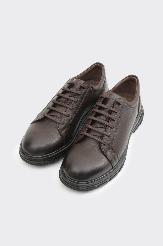 Hakiki deri malzemesi ile üretilmiş olup uzun ömürlü kullanım sunar. Siyah ve kahve renk seçenekleriyle günlük kullanıma uygun şıklıkta tasarlanmıştır. Bağcıklı yapısı ayak anatomisine uygun şekilde ayarlanabilir konfor sağlar. Hafif yapısı ve esnek tabanı sayesinde tüm gün rahatlıkla giyilebilir. Minimal tasarımı ile resmi ve günlük kıyafetlerle uyum içinde kullanılabilir.