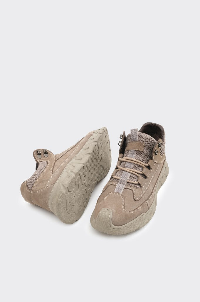 Bu hakiki deri casual ayakkabı, günlük kullanım için ideal bir seçim sunuyor. Bağcıklı tasarımı hem pratik kullanım hem de şık bir görünüm sağlıyor. Nubuk yüzeyi ile bej ve gri renk seçenekleri, modern tarzınıza uyum sağlıyor. Kaliteli deri malzemesi sayesinde uzun ömürlü kullanım ve konfor garantiliyor. Gün boyu rahatlık ve şıklığı bir arada yaşatıyor.