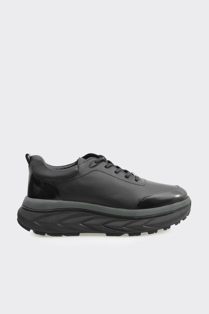 Hakiki deri malzemesiyle üretilen bu sneaker, dayanıklılığı ve şıklığı bir arada sunuyor. Yüksek taban tasarımı hem konfor sağlıyor hem de stil katıyor. Comfort taban teknolojisi sayesinde uzun süreli kullanımlarda bile ayaklarınızı yormuyor. Bağcıklı yapısıyla kolay giyilip çıkarılabilen bu siyah sneaker, günlük kombinlerinizin vazgeçilmezi olacak.