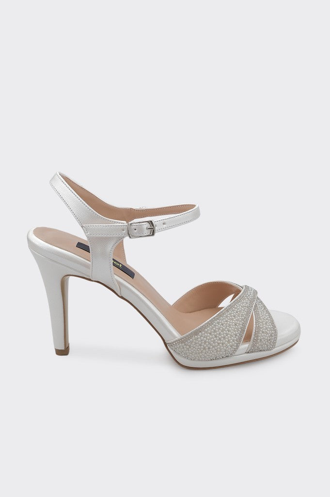 Bilekten Bantlı Boncuk Aksesuarlı Kadın Gelinlik Ayakkabısı