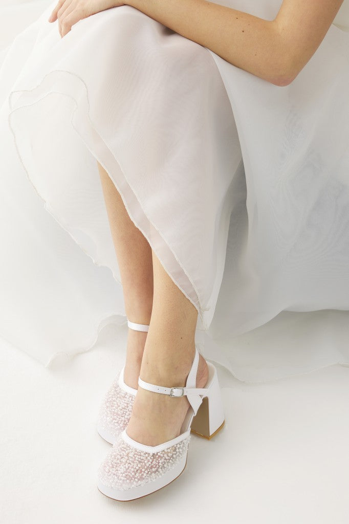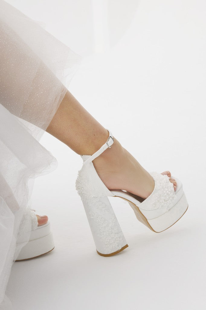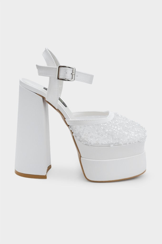 Platformlu Boncuk Aksesuarlı Kadın Gelinlik Ayakkabı