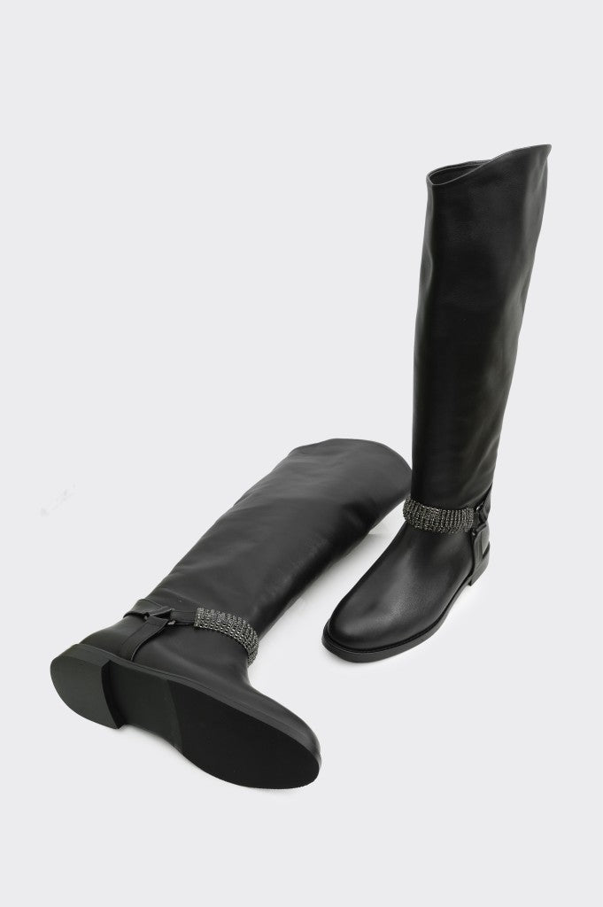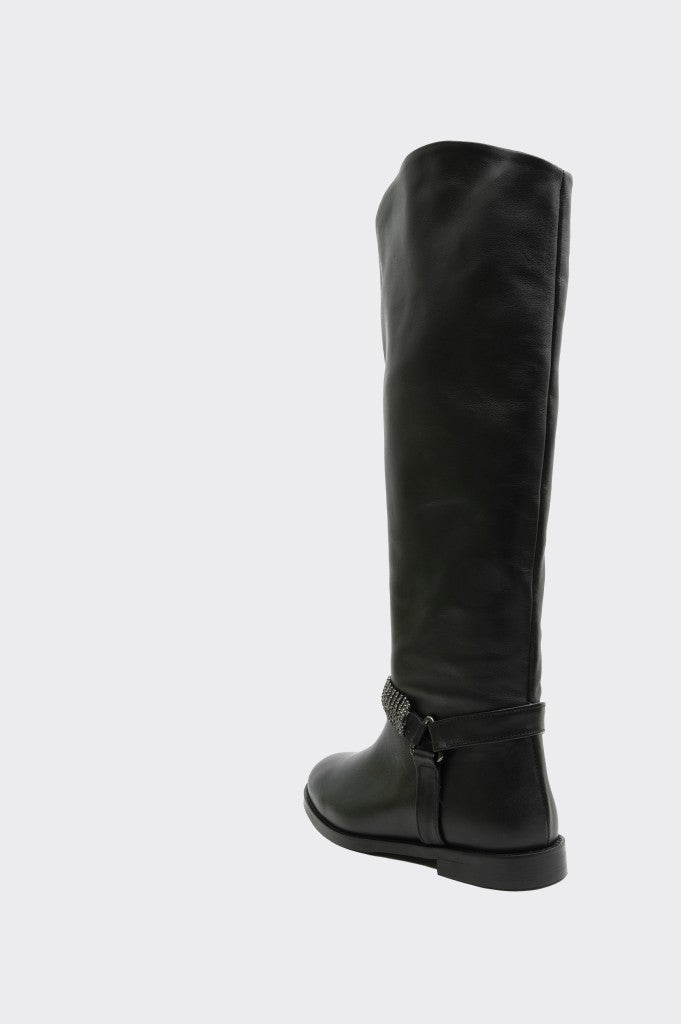 Hakiki Deri Fermuarsız Taş Aksesuarlı Kadın Çizme