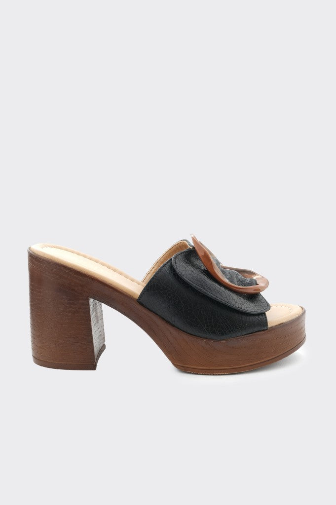 Suzanna Hakiki Deri Topuklu Kadın Terlik
