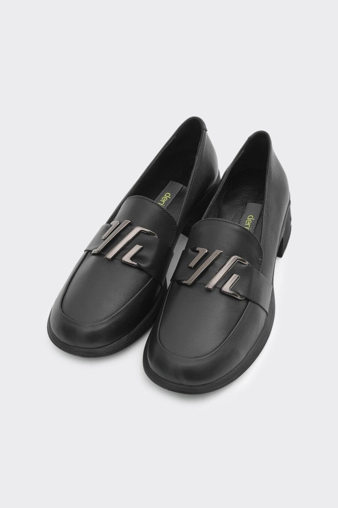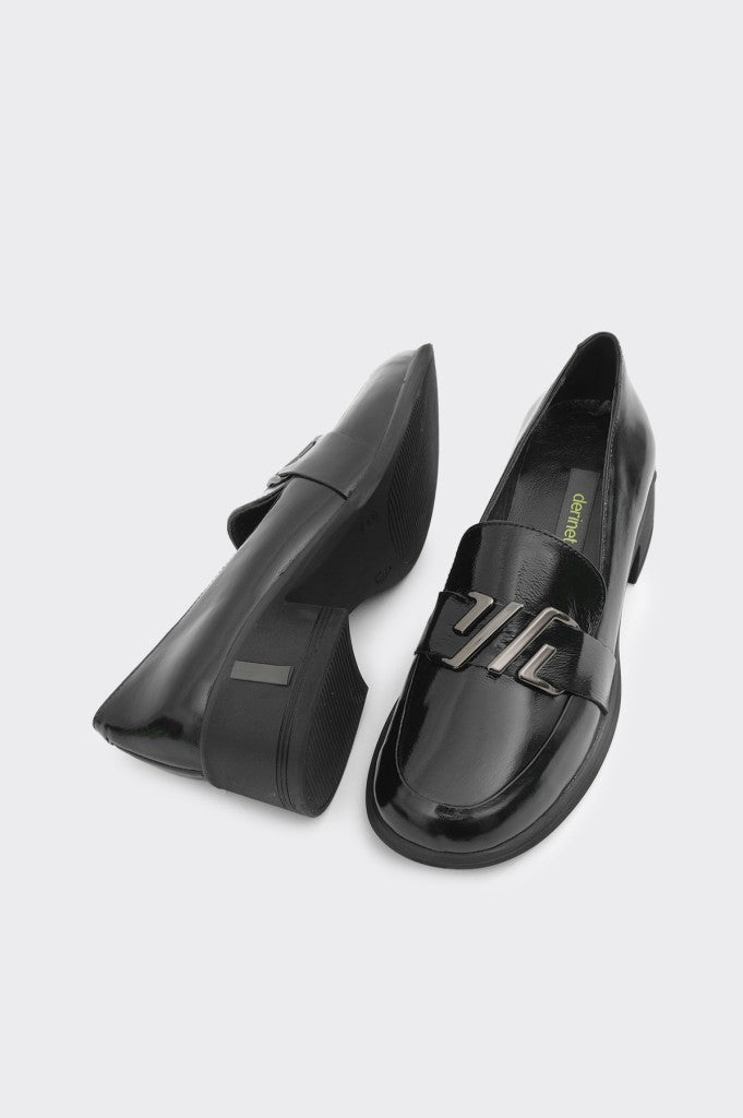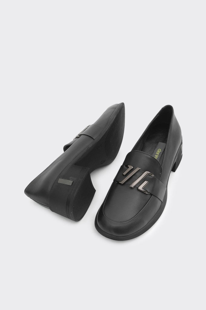 Kısa Topuk Hakiki Deri Tokalı Kadın Topuklu Ayakkabı