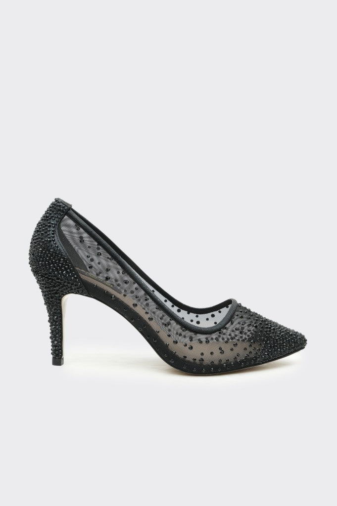 Cinderella Stone Accessory Mesh Women's Stiletto