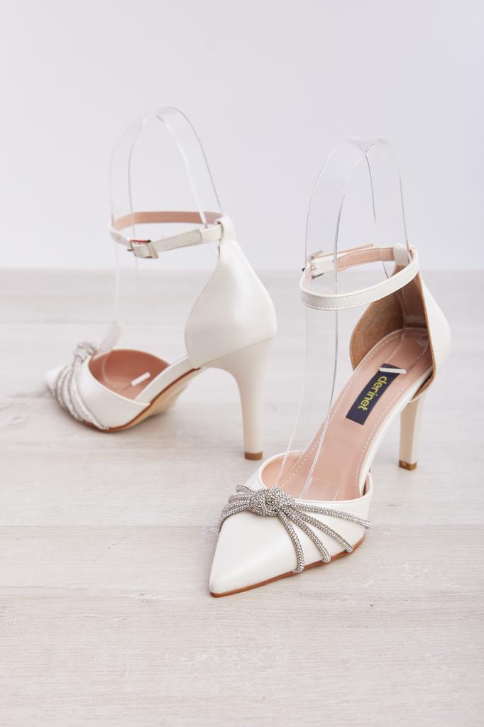 Women's Evening Shoes with Stone Accessory and Ankle Strap