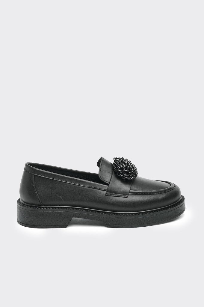 Casual Hakiki Deri Taş Aksesuarlı Kadın Ayakkabı