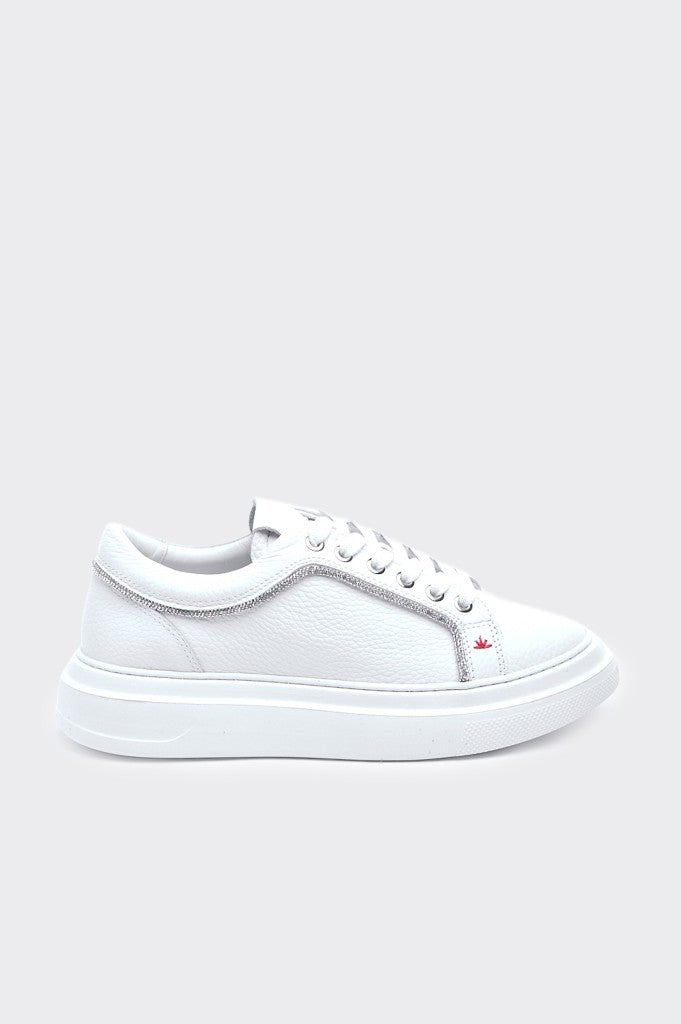 Hakiki Deri Taş Aksesuarlı Kadın Sneaker